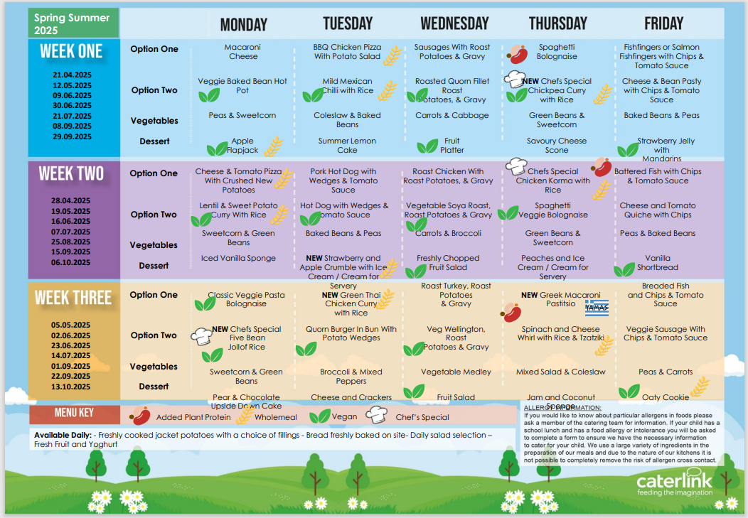 Pupils may bring a packed lunch from home if preferred. We ask families to avoid sweets, fizzy drinks, and nut-based products to support healthy choices and allergy safety.