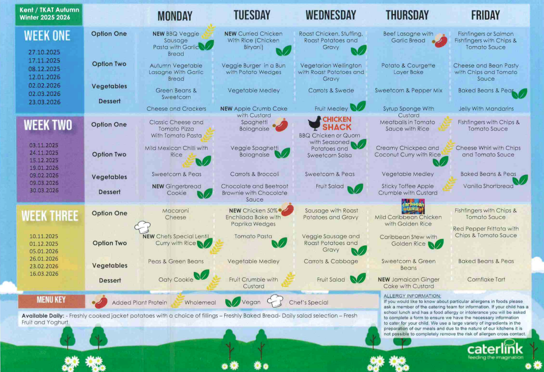 Menus are updated termly and available in paper form on request.